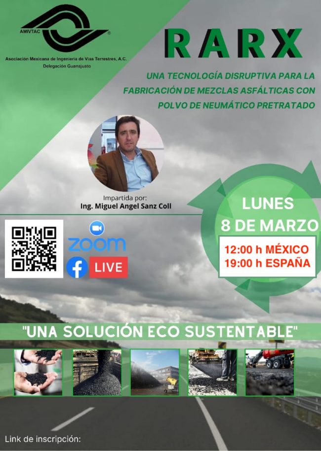 Miguel Ángel Sanz, Gerente de Cirtec, impartirá la conferencia online «RARx, una Solución Eco Sustentable», en la que dará a conocer en detalle el aditivo de Cirtec «RARx», una tecnología disruptiva para la fabricación de mezclas asfálticas con polvo de neumáico pretratado. El evento, organizado por la Asociación Mexicana de Ingenieria de Vías Terrestres…